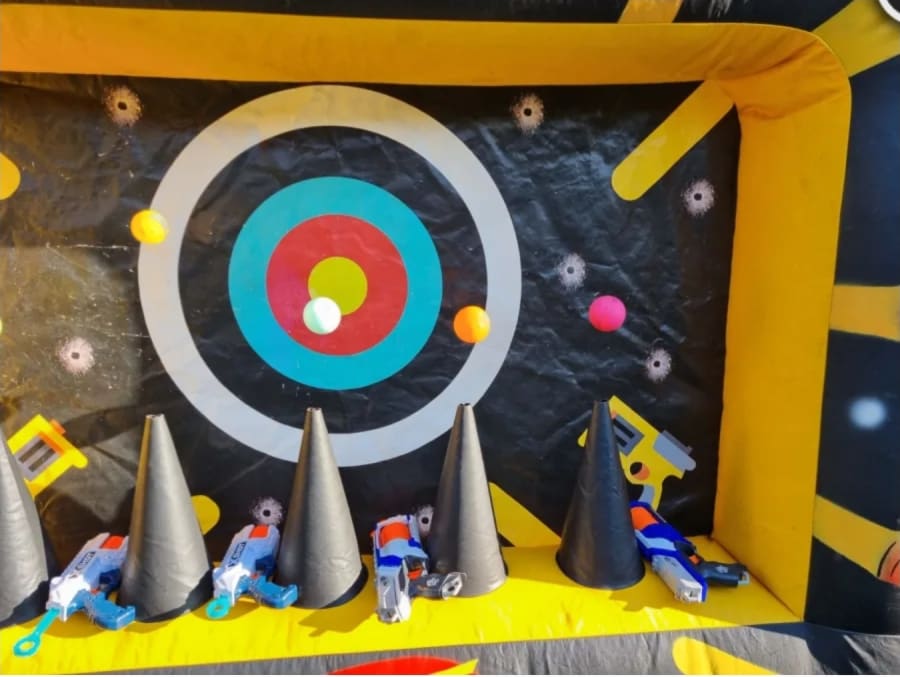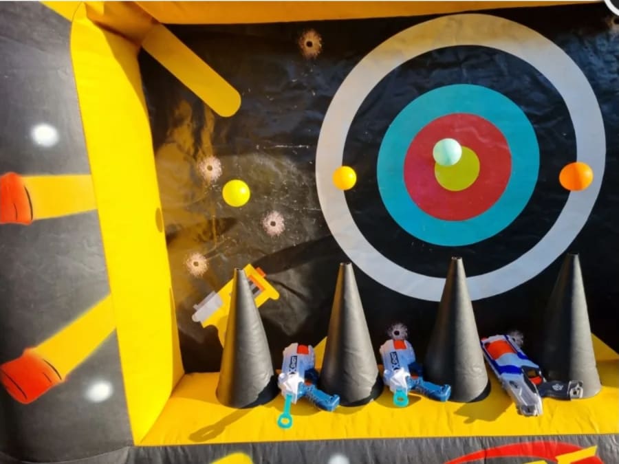Fire away with our Nerf Shootout inflatable nerf target. Fast to set up. Safe for kids and adults. Supplied with a selection of Nerf guns and foam ammo. Perfect for parties, school events and team challenges. We also offer inflatable shootout Nerf target Nerf Shootout in Burton on trent, swadlincote, barton under needwood, Hatton, Hilton, and surrounding areas. 🌟