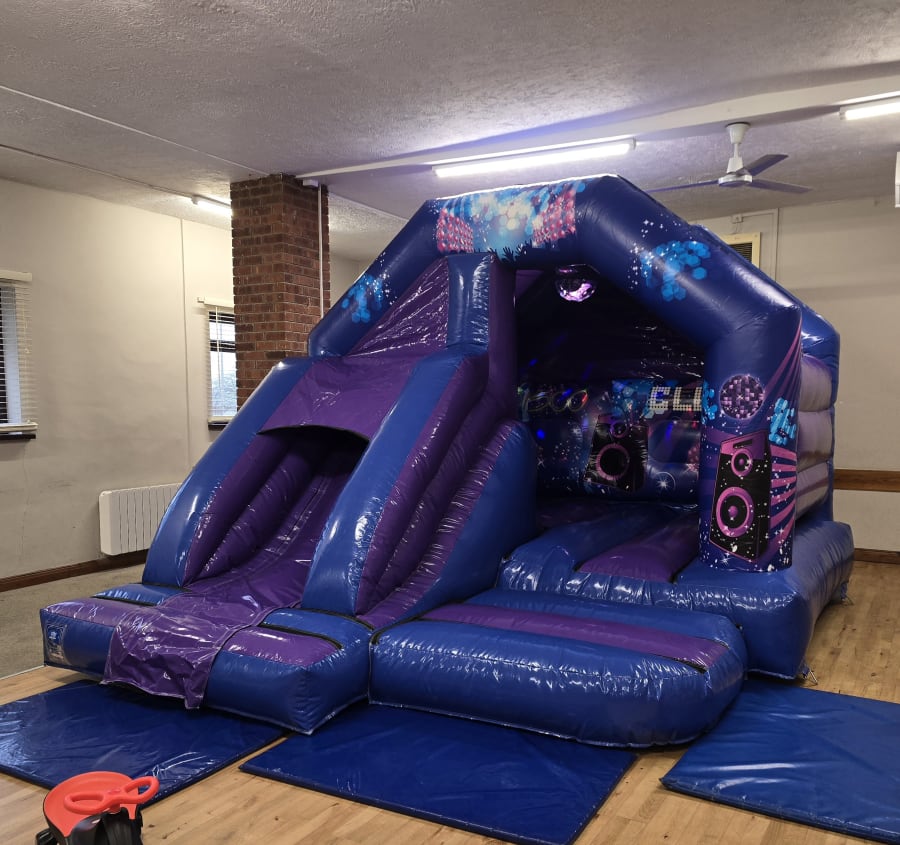Whether you're hosting at Newhall Village Hall, Stanton Village Hall, Waterside Community Centre, or in your own garden, our 12x15ft Disco Combi Castle is an ideal fit. Its versatile size ensures it can accommodate various settings, ensuring a seamless party experience every time.