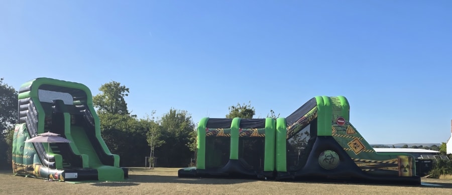Inflatable Assault Course and inflatable slide hire Toxic Mega Slide & 42ft Toxic Assault Course with BIGGER 10ft Slide in Burton on Trent, Swadlincote and surrounding areas is the ultimate combo for high-energy events. This package pairs a gruesome, eye-catching mega slide with a 42ft assault course and a bigger 10ft slide for non-stop fun. Perfect for schools, corporates, birthdays, weddings and community fetes and more...... ๐
