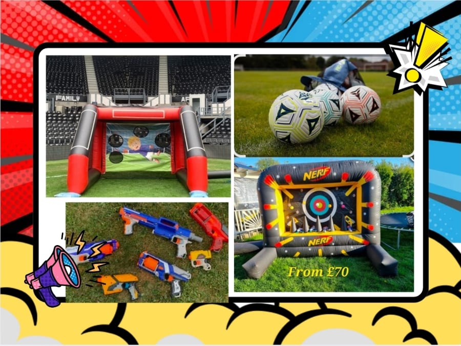 Double trouble, double the fun. Our Inflatable shootout double fun Shootout Package, Nerf and football in Burton on Trent, Swadlincote and surrounding areas including - Barton under Needwood, Alrewas, Draklow, Moira, Walton on Trent, Donisthorpe, Gresley, Newhall, Stapenhill, Woodville, Ashby, Hartshorne, Midway, Winshill, Horninglow, Stretton, Tutbury, Hatton, Hilton, Branston, Tatenhill, Gresley, Linton, Overseal, Measham delivers two crowd-pleasing inflatables for parties, school events, and community fun days. Fast setup. Safe play. Big smiles. 🎉